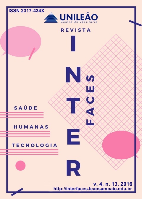 A Revista Interfaces: Saúde, Humanas e Tecnologia disponibiliza para seus leitores um número especial (Vol. 2, nº 4 - 2014) com publicações de trabalhos científicos desenvolvidos por alunos e professores da Faculdade Leão Sampaio de Juazeiro do Norte – Ceará, extraídos de resumos divulgados em anais de três eventos acadêmicos locais: V Encontro Caririense de Biomedicina, IX Semana de Enfermagem da Faculdade Leão Sampaio e I Semana de Iniciação à Docência da Faculdade Leão Sampaio. A principal característica desse número está centrada nas variedades dos temas, nas metodologias utilizadas e suas diferentes abordagens, o que condiz essencialmente com o perfil fundamental da Revista.